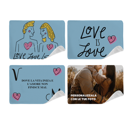 Love is love - Set di 4 Tovagliette in tessuto lavabile - personalizzata con foto e iniziali