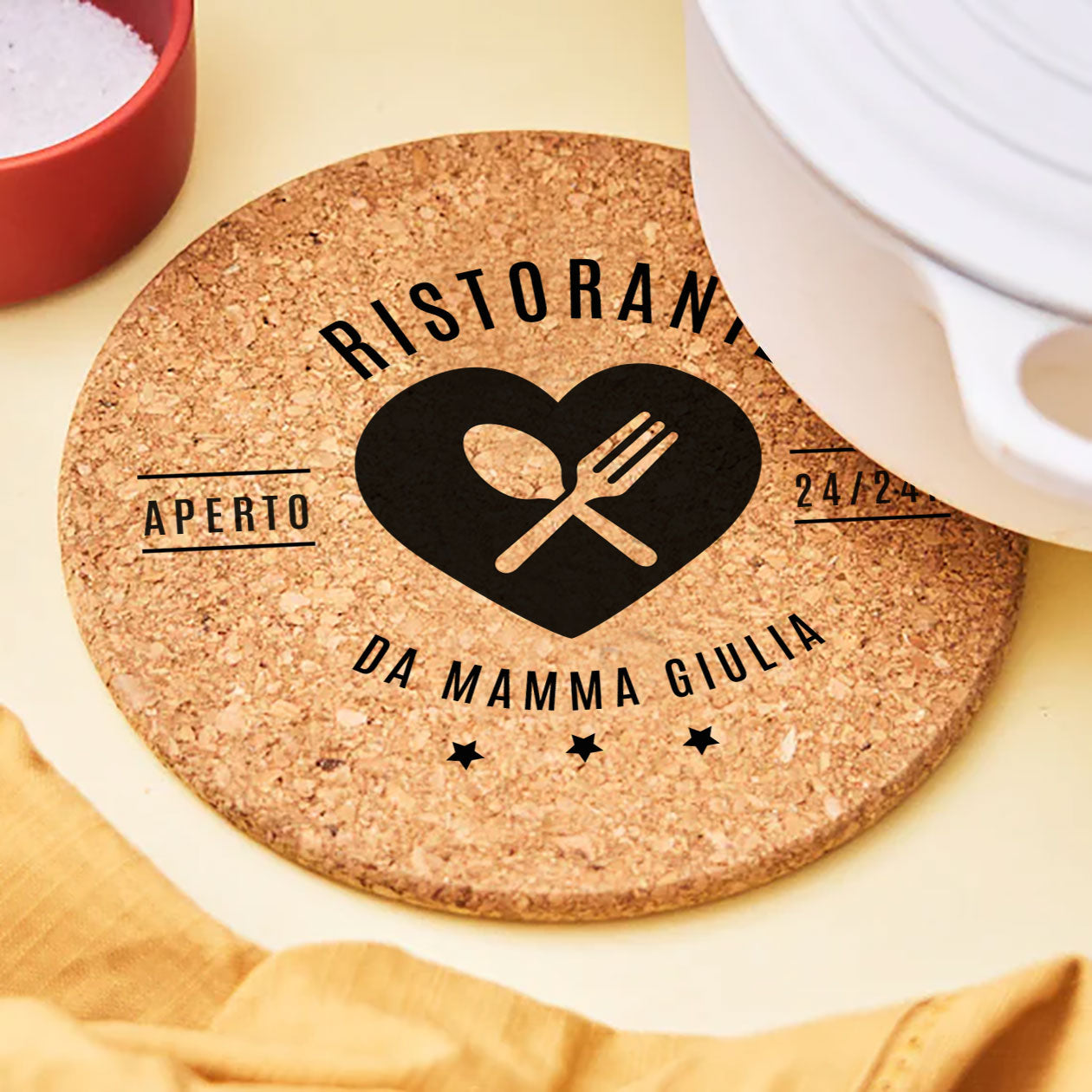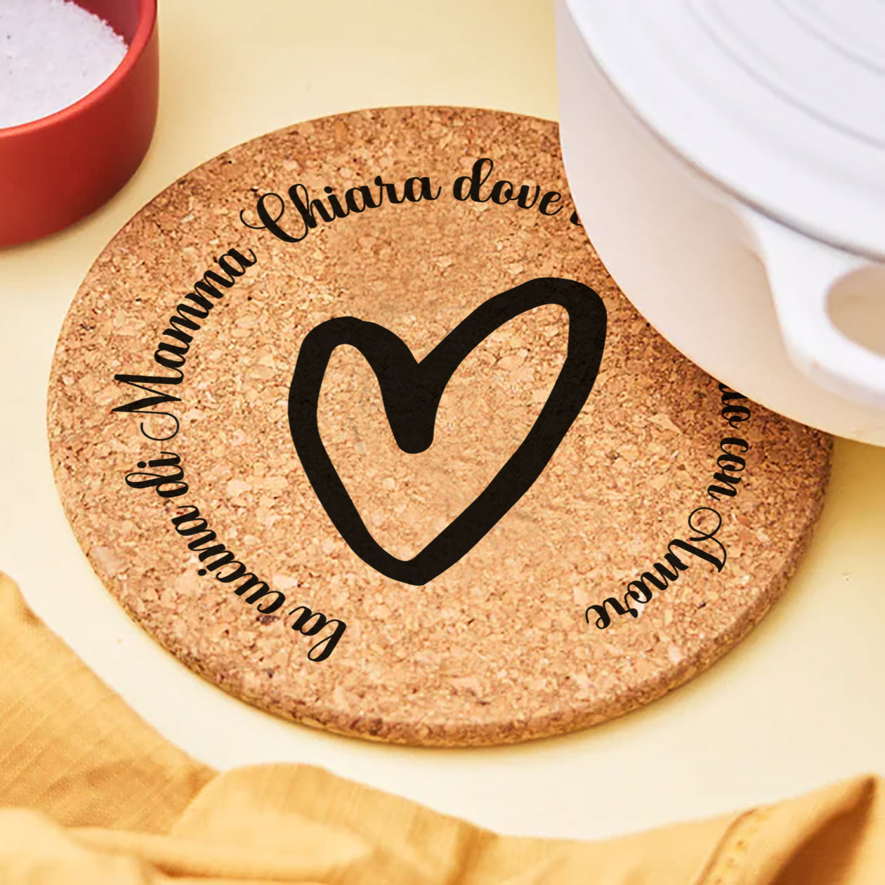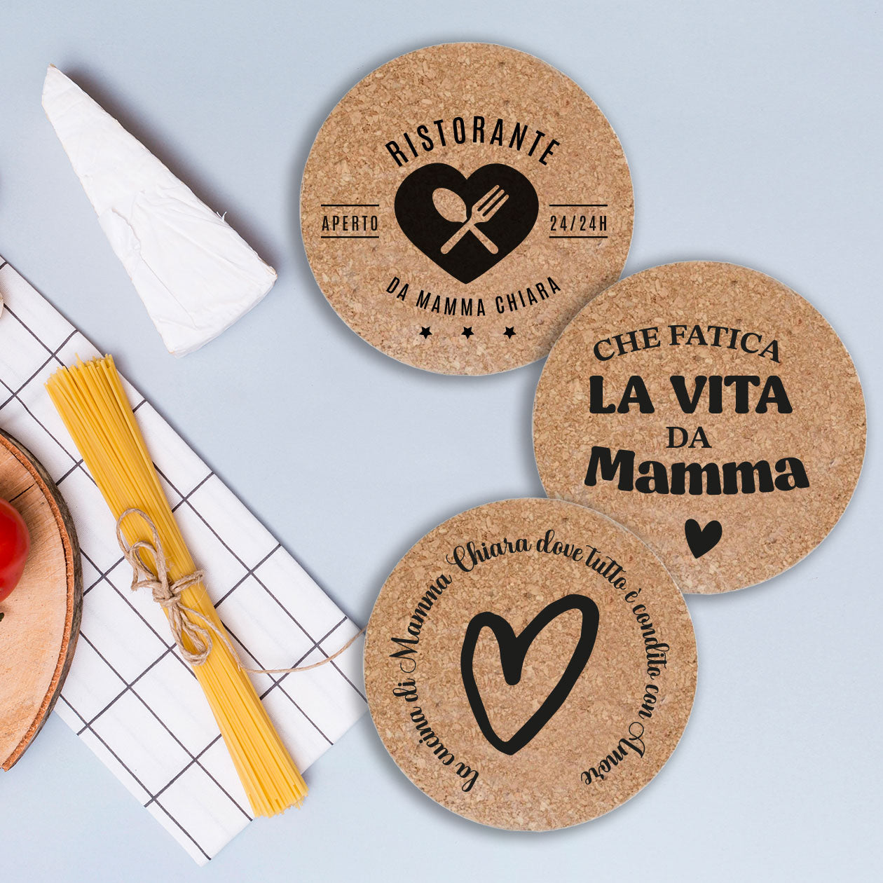 - Personalizzazione: I sottopentola presentano una stampa personalizzata unica.