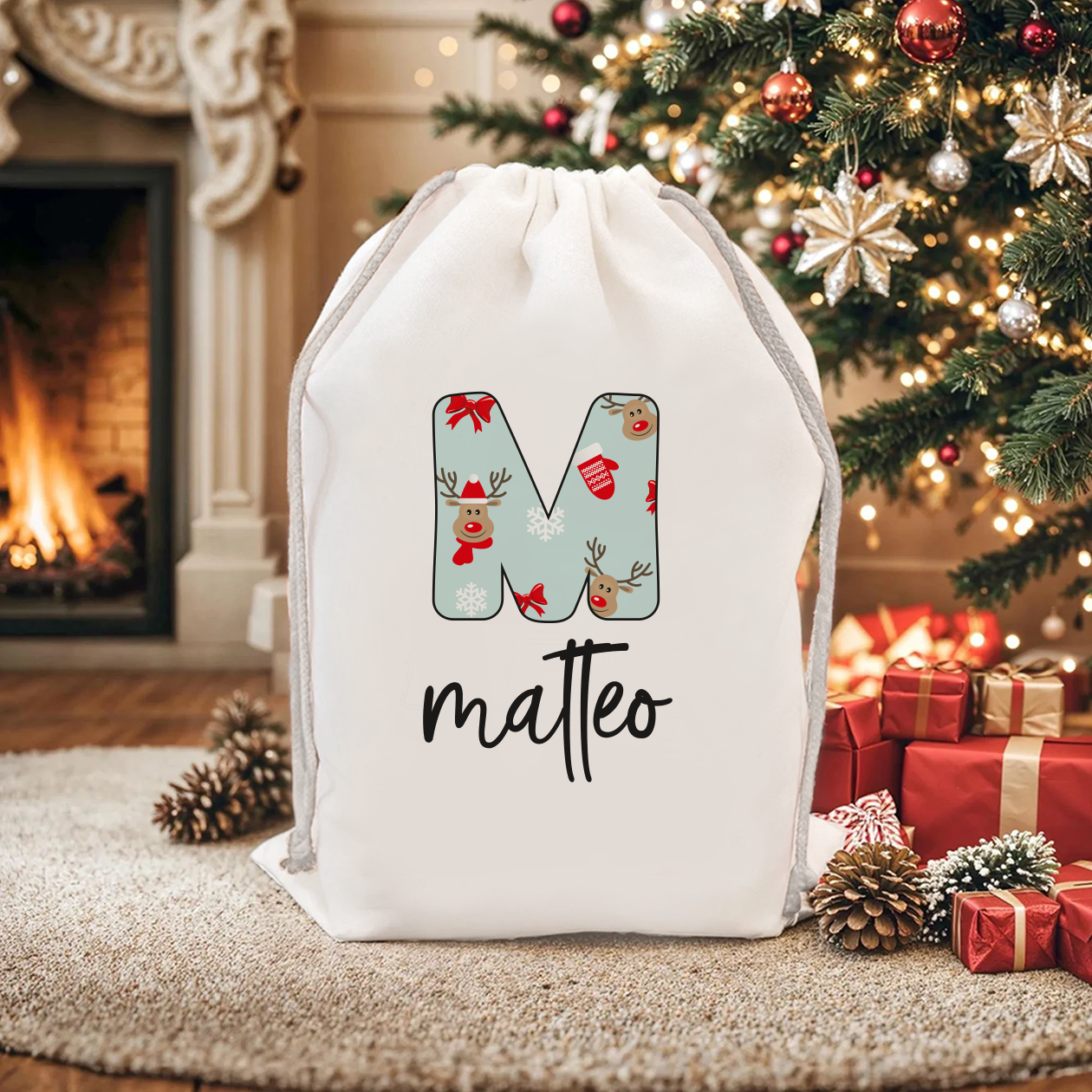 Letter renna - Sacchetto - personalizzato con nome e iniziale