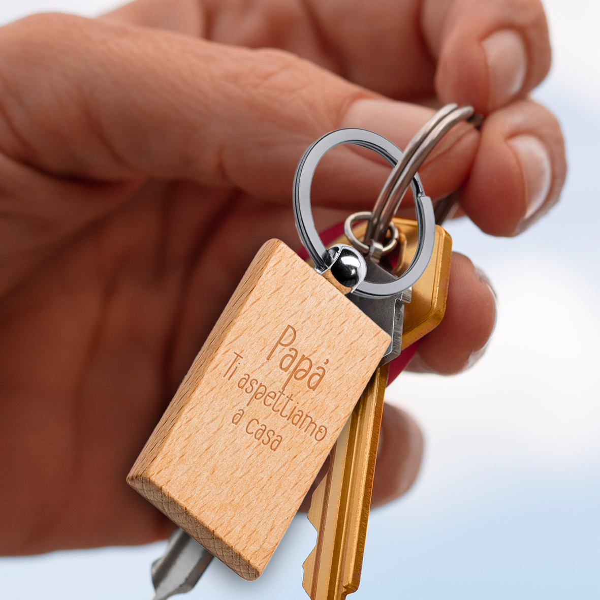 - MATERIALE: Portachiavi realizzato in legno naturale di alta qualità con incisione laser personalizzata e anello metallico resistente