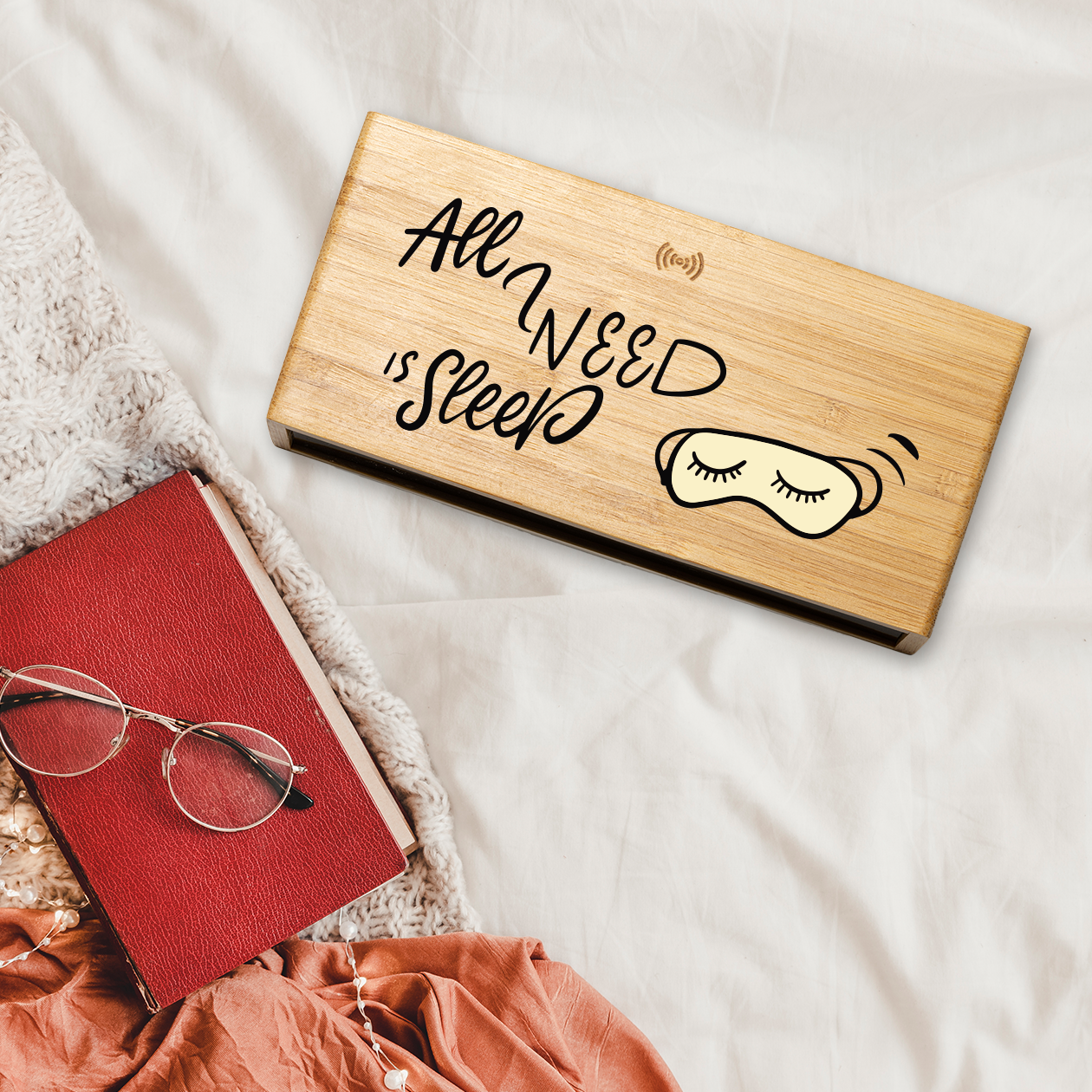 All I need is sleep - Sveglia Digitale in Bambù con Orologio da Tavolo