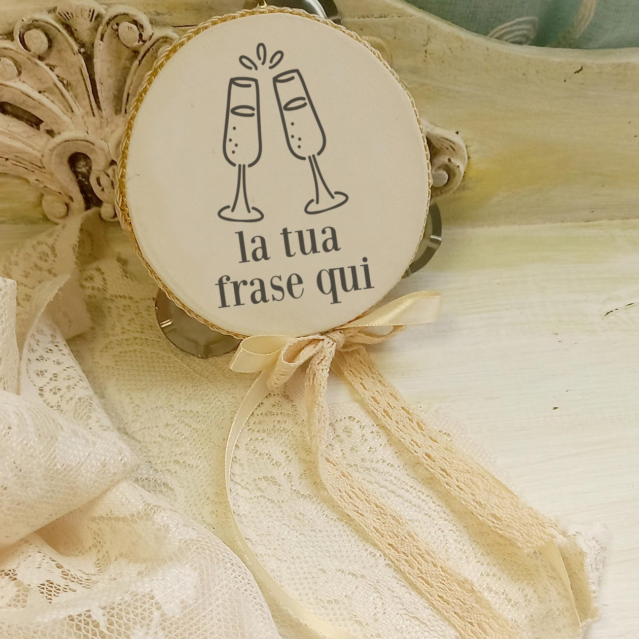 - DESIGN ELEGANTE: Tamburello decorativo in legno con scritte personalizzate in stile calligrafico