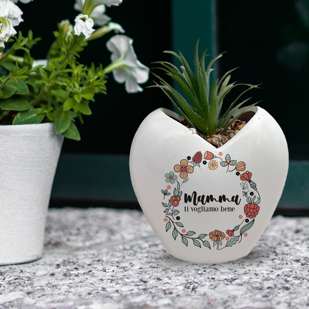 Elegantissimo vaso in ceramica dai colori pastello con piantina artificiale