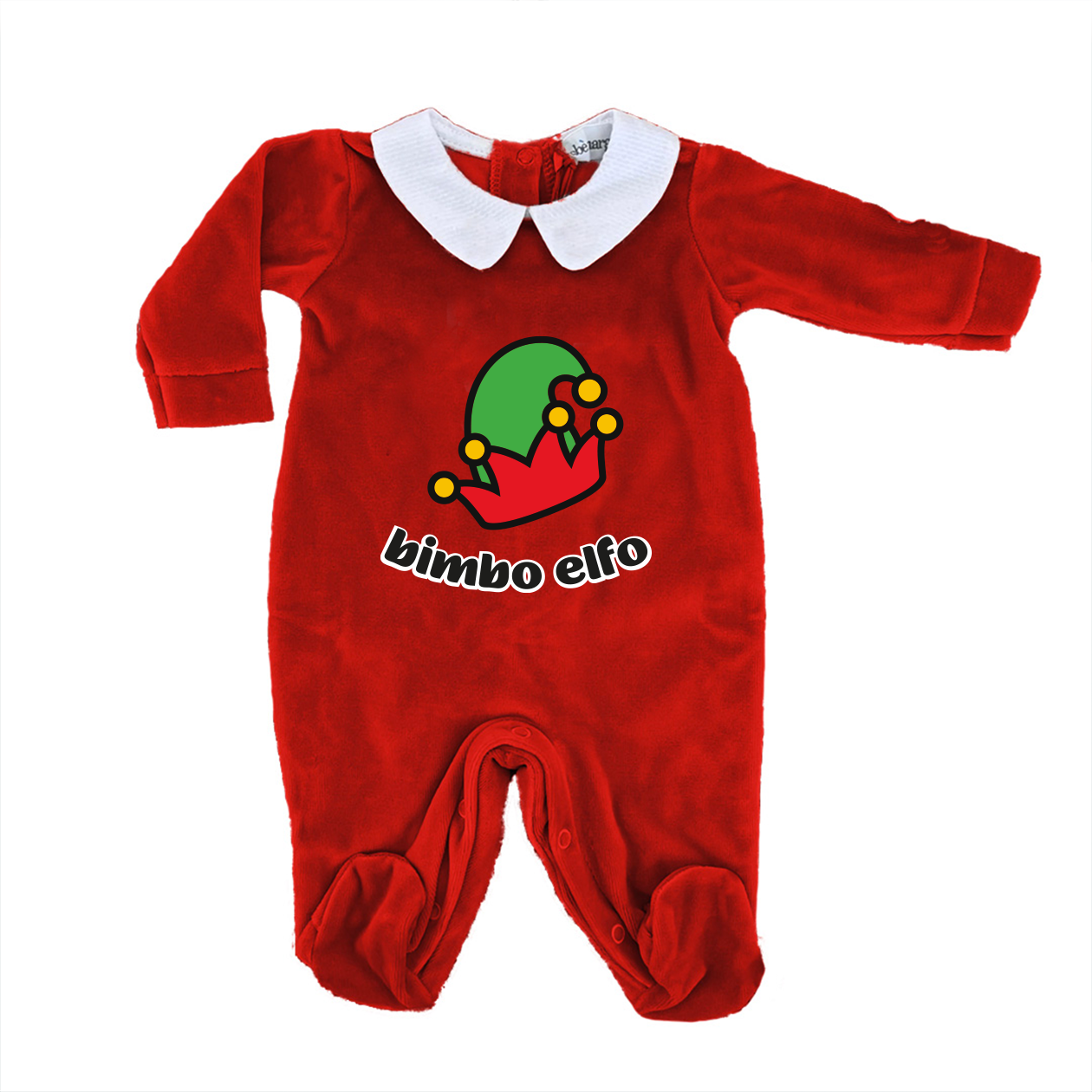 Bimbo Elfo - Pagliaccetto Neonato in Ciniglia con Colletto Bianco