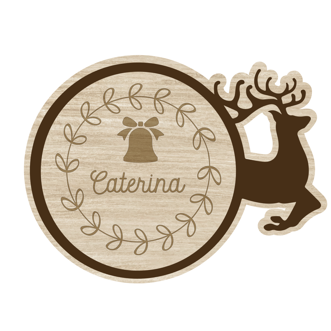 Campana e renna - Set 3 pezzi Sottobicchiere in Legno - personalizzato con nome