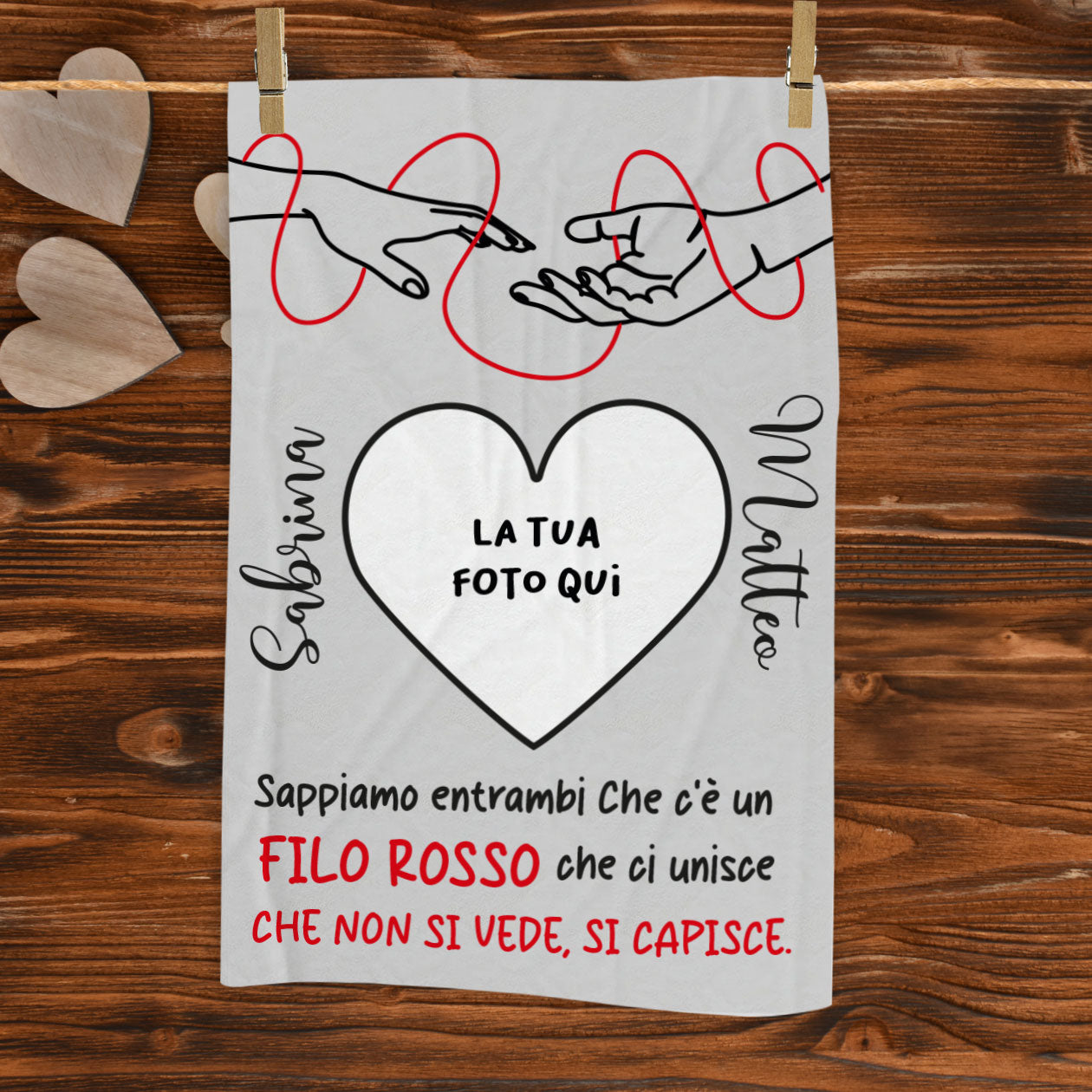 Filo rosso - plaid in pile - personalizzato con foto e nomi