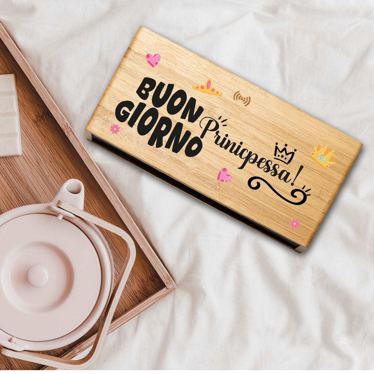 Buongiorno principessa - Sveglia Digitale in Bambù con Orologio da Tavolo
