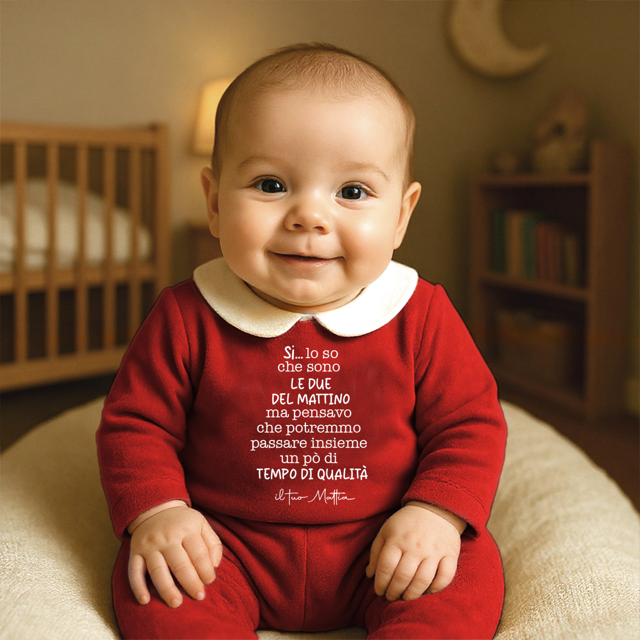 Tempo di qualità - Pagliaccetto Neonato in Ciniglia con Colletto Bianco personalizzato con nome