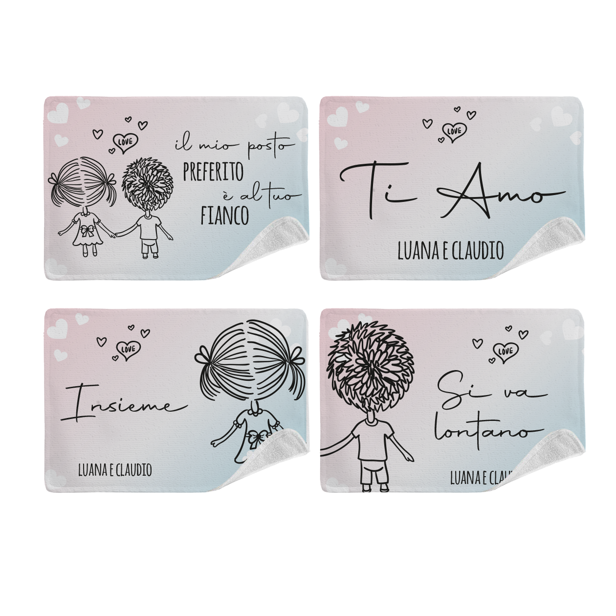 Love - Set di 4 Tovagliette in tessuto lavabile - personalizzata con nomi