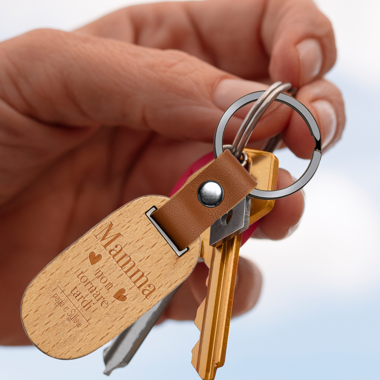 Mamma non tornare tardi - Portachiavi in Legno personalizzato con nomi
