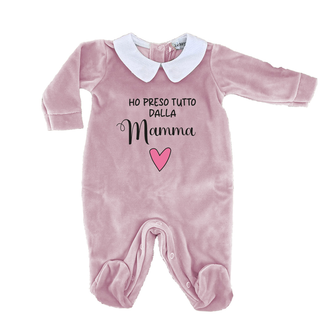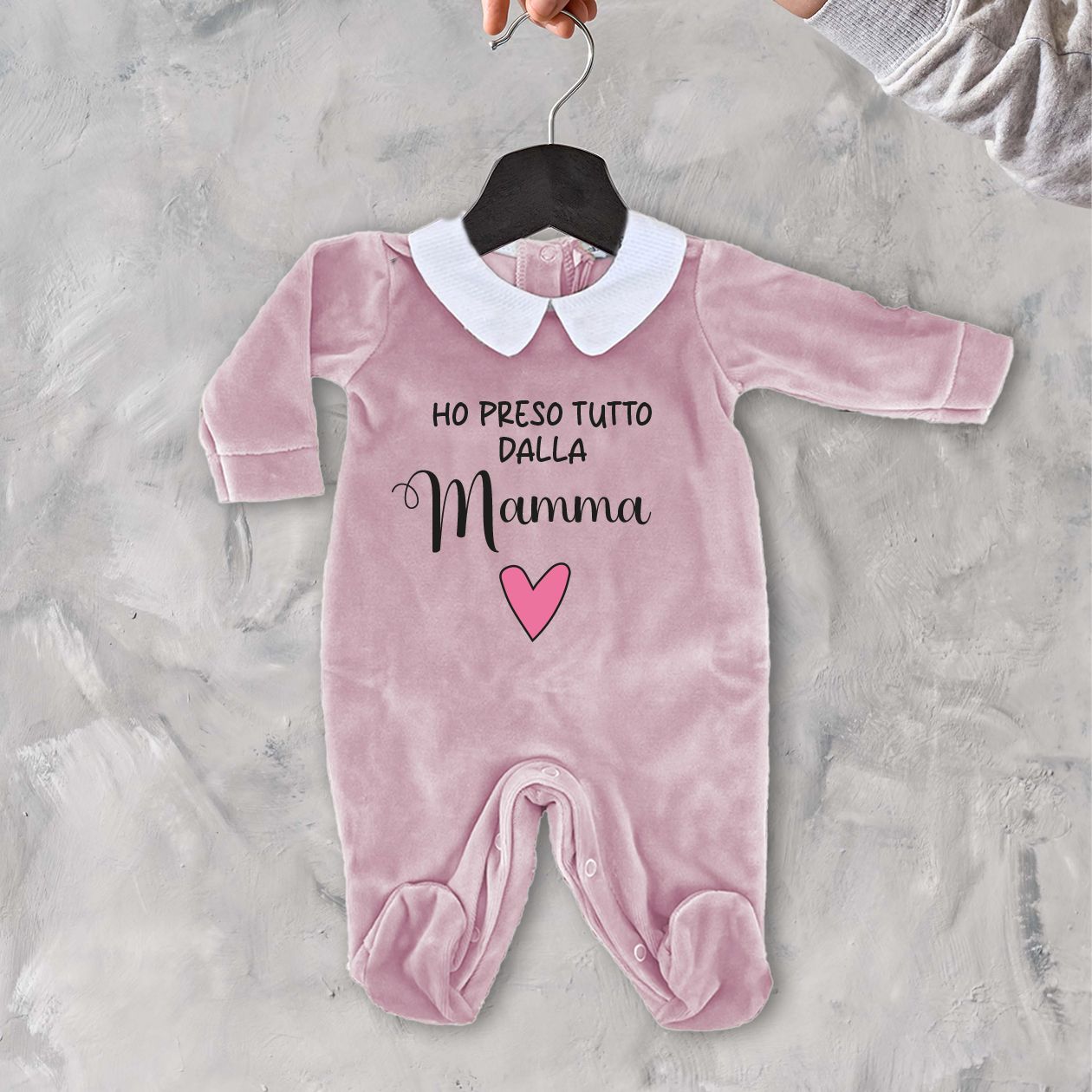 Ho preso tutto dalla mamma - Pagliaccetto Neonato in Ciniglia con Colletto Bianco