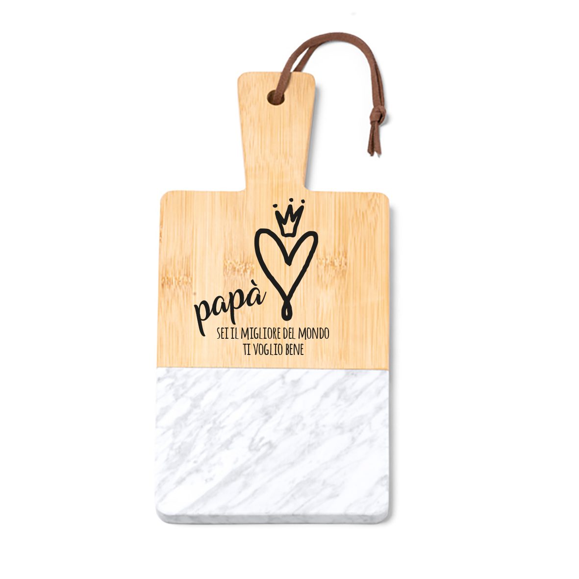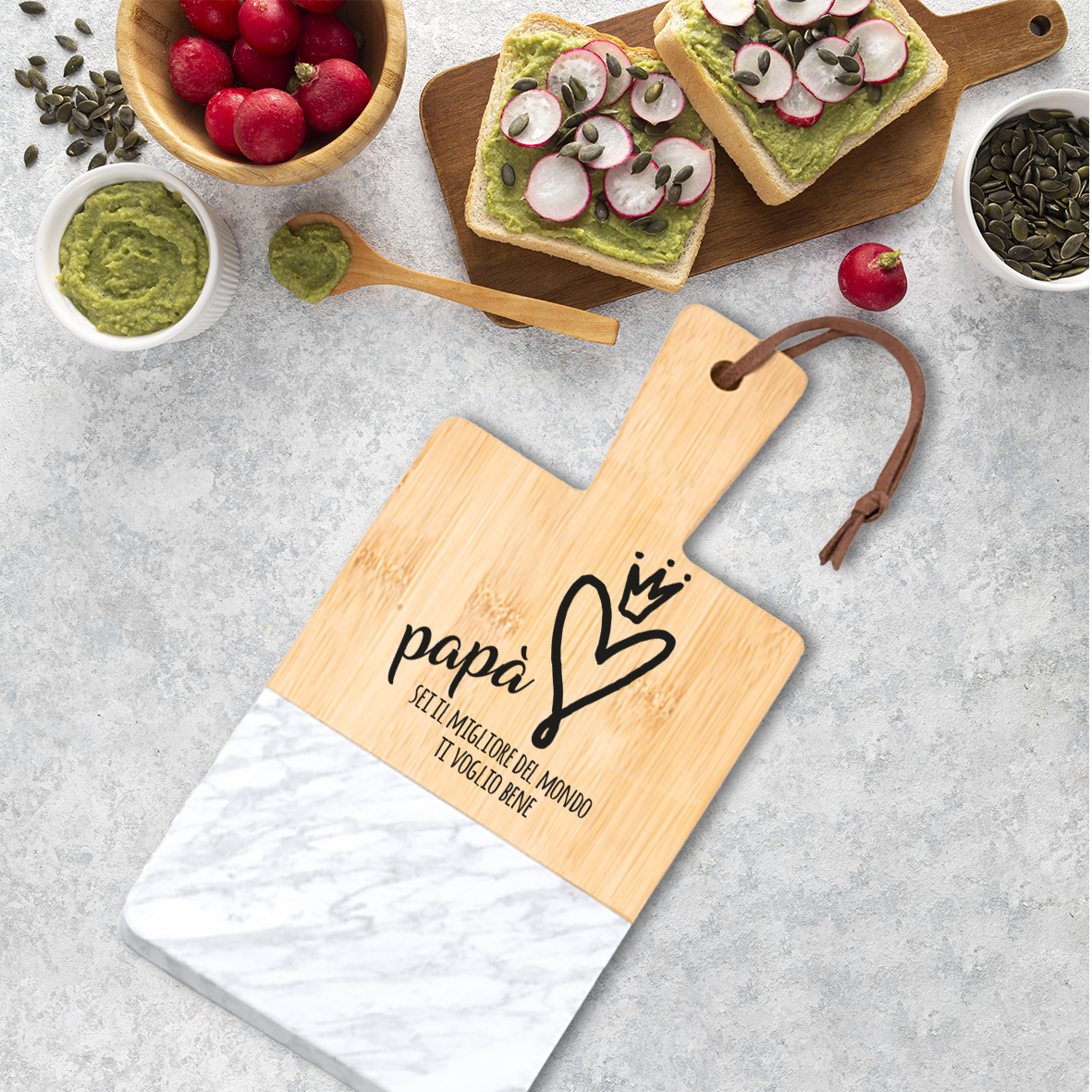 Papà sei il migliore del mondo - Tagliere in marmo e bamboo naturale