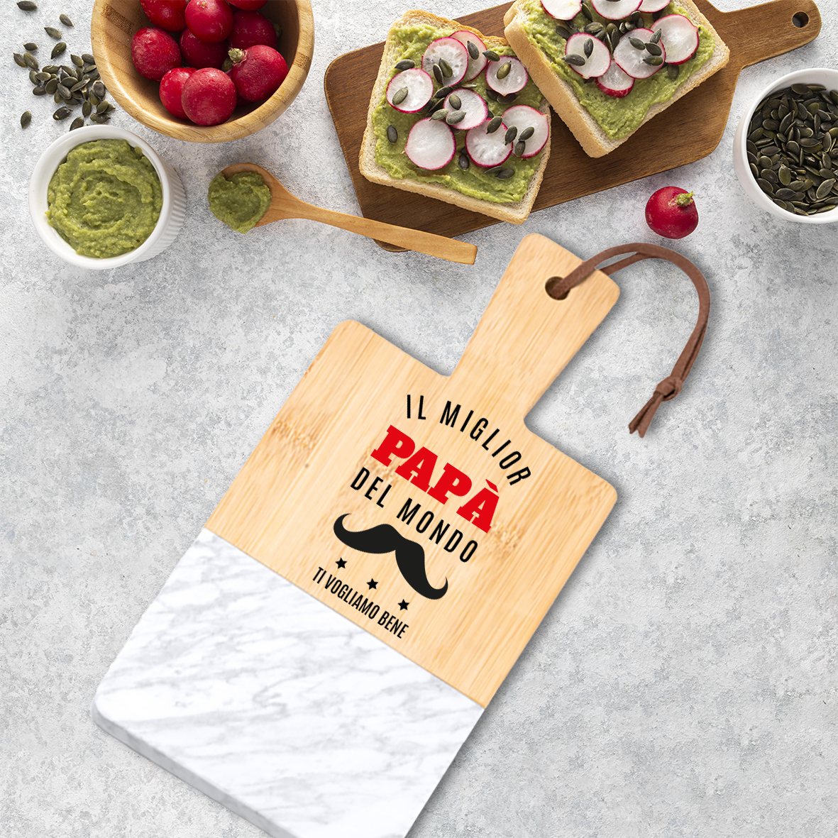 Il miglior papà del mondo - Tagliere in marmo e bamboo naturale