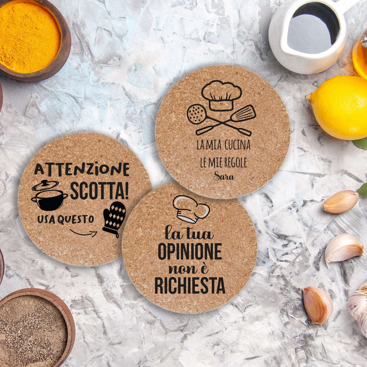 - Personalizzazione: I sottopentola presentano una stampa personalizzata unica.