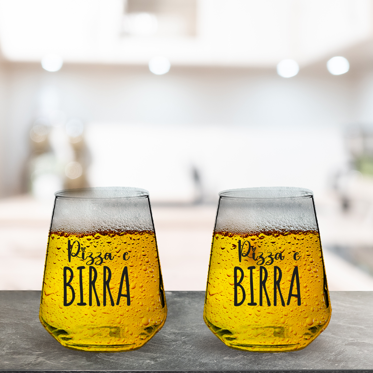 Pizza e birra - 6 Bicchieri Personalizzati con frasi Adatti ad Acqua Vino Birra Tutte le Bevande