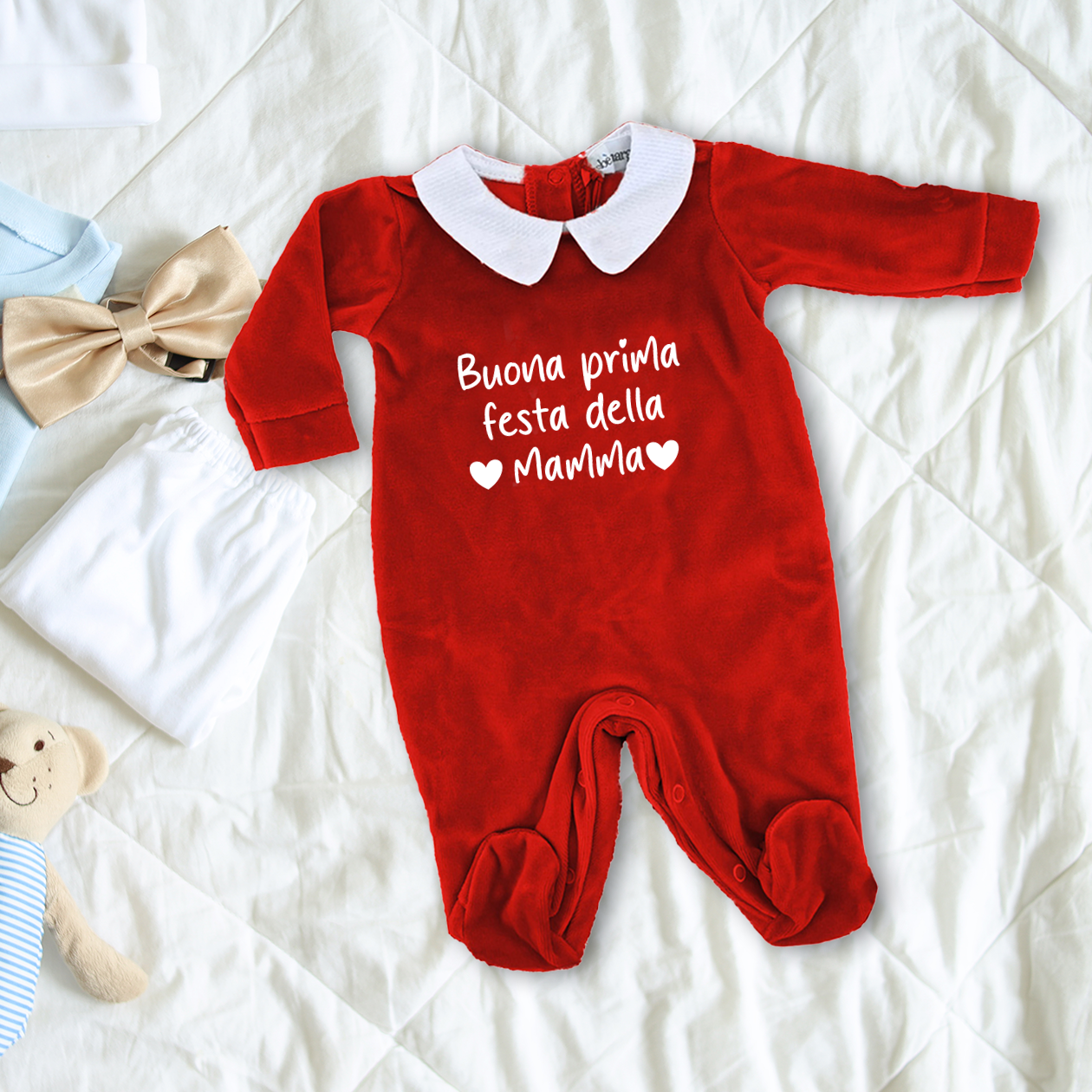 Buona prima festa dalla mamma - Pagliaccetto Neonato in Ciniglia con Colletto Bianco