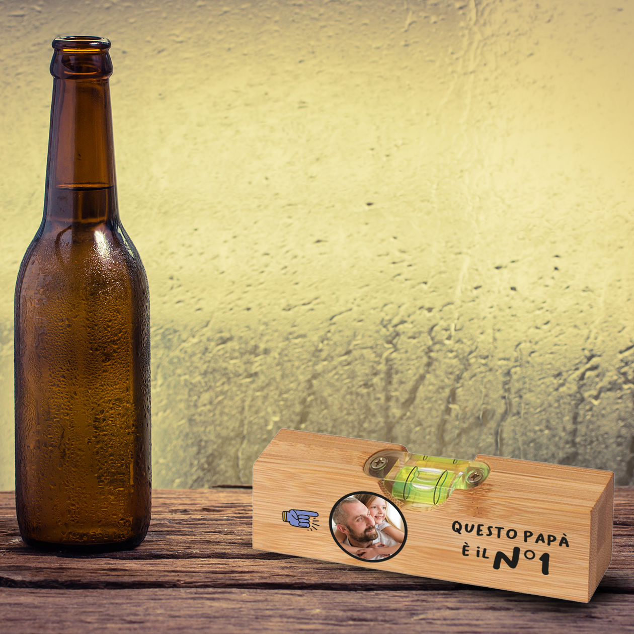 Questo papà è il numero 1 - Apribottiglia con mini livella - personalizzato con foto