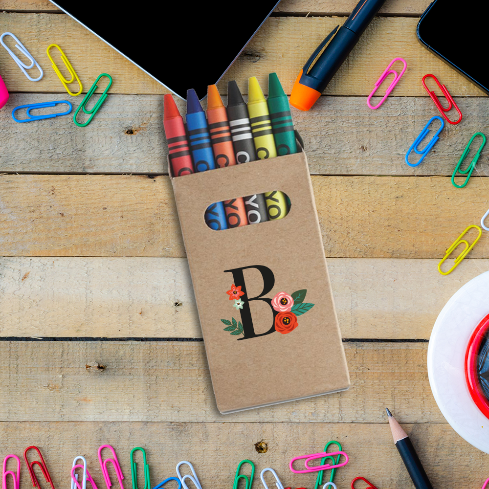 Elegant Letter Flower - Set da 6 - Pastelli Cera - personalizzati con iniziali