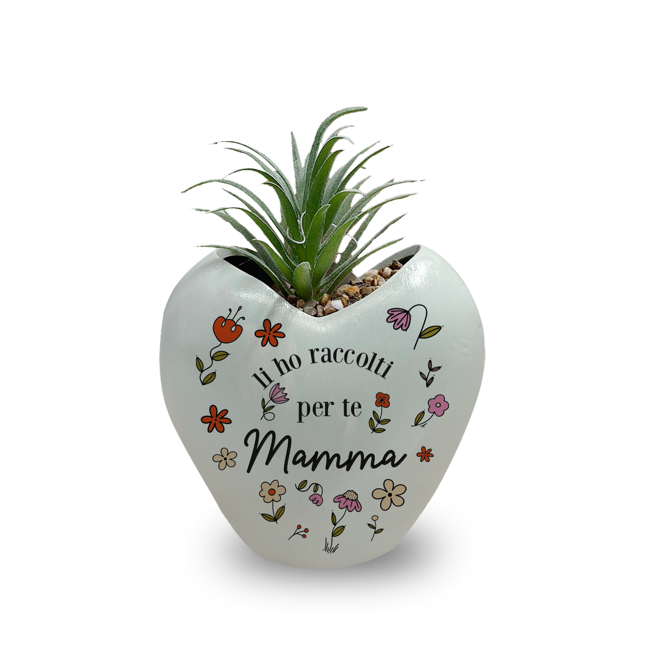 Elegantissimo vaso in ceramica dai colori pastello con piantina artificiale