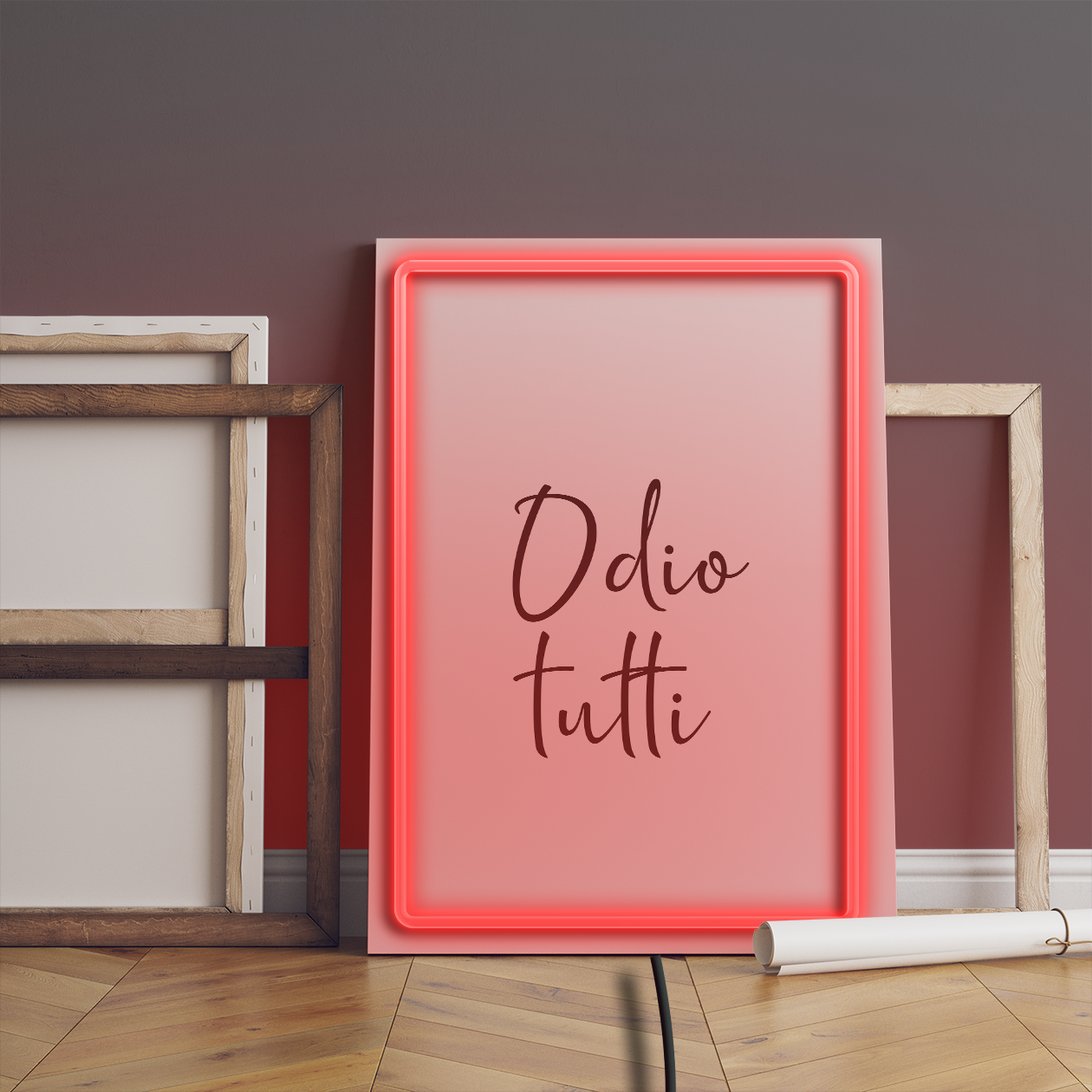 Odio tutti - Quadretto con Neon Led