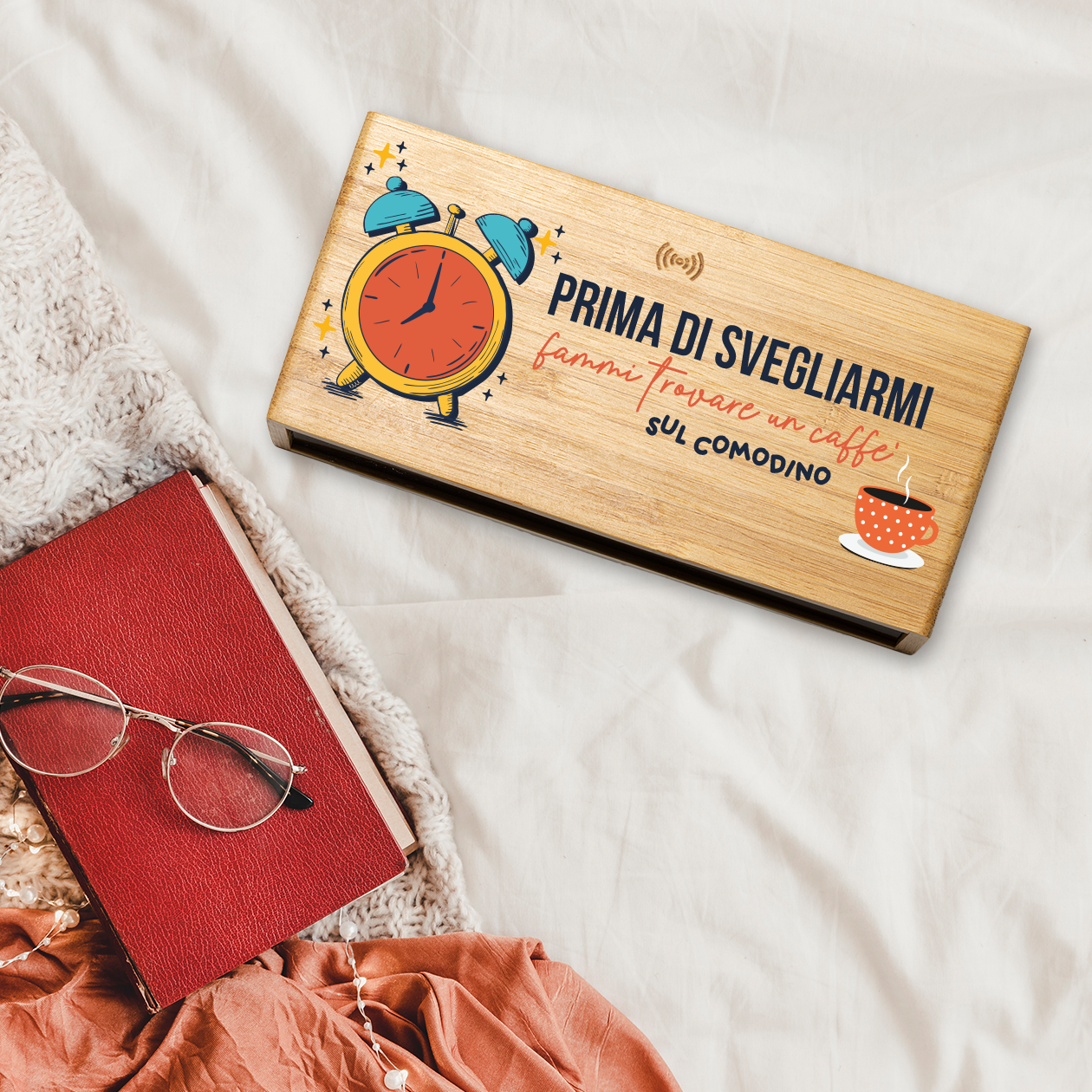 Prima di svegliarmi fammi trovare un caffe sul comodino - Sveglia Digitale in Bambù con Orologio da Tavolo