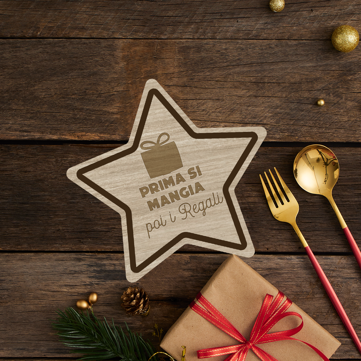 Prima si mangia dopo i regali - Set 3 pezzi Sottobicchiere in Legno