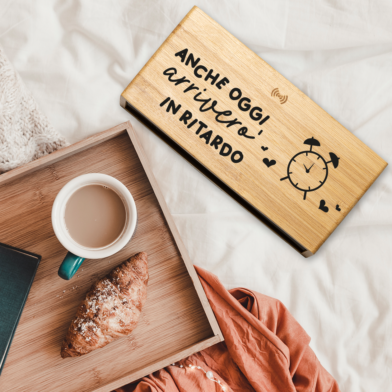 Anche oggi arriverò in ritardo - Sveglia Digitale in Bambù con Orologio da Tavolo