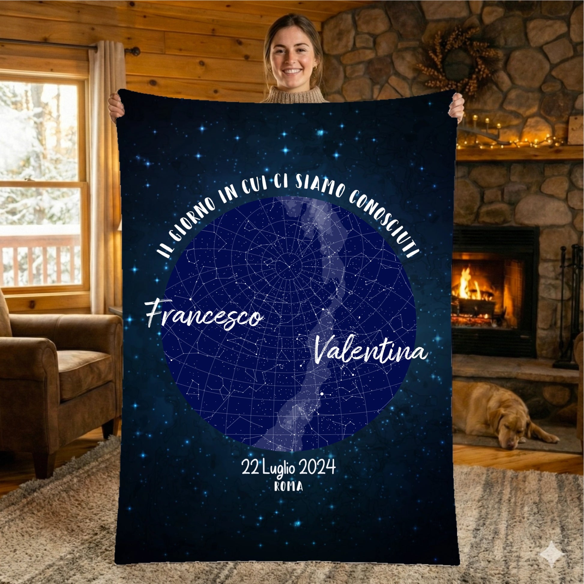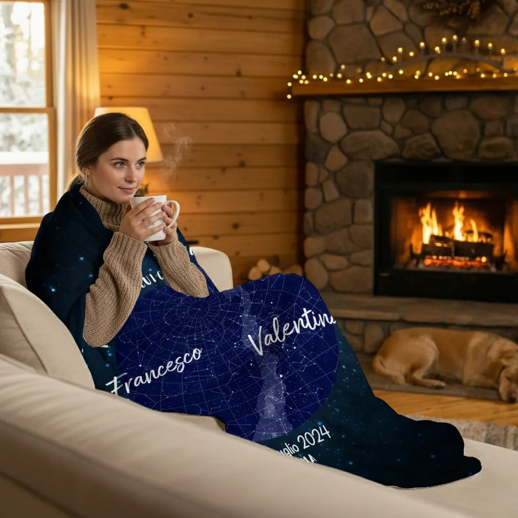 Immagina: fuori fa freddo, siete accoccolati sul divano con una cioccolata calda, una serie TV... e addosso avete il cielo esatto della notte in cui vi siete incontrati.