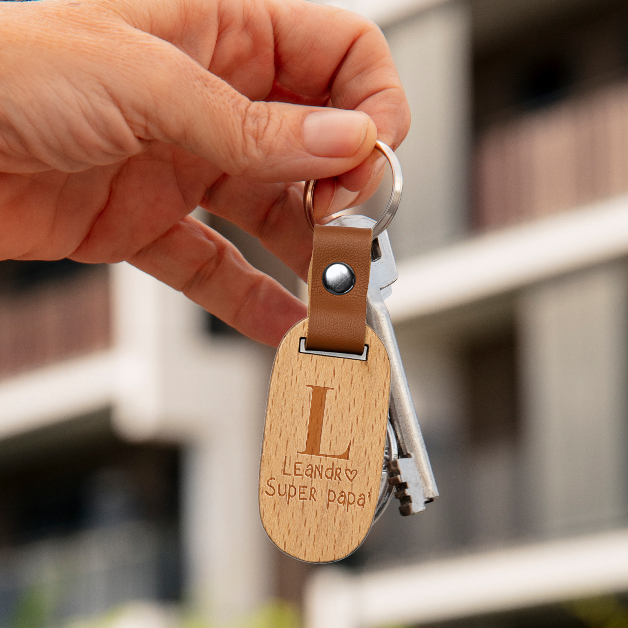 - MATERIALE: Portachiavi realizzato in legno naturale di alta qualità con incisione laser personalizzata e anello metallico resistente