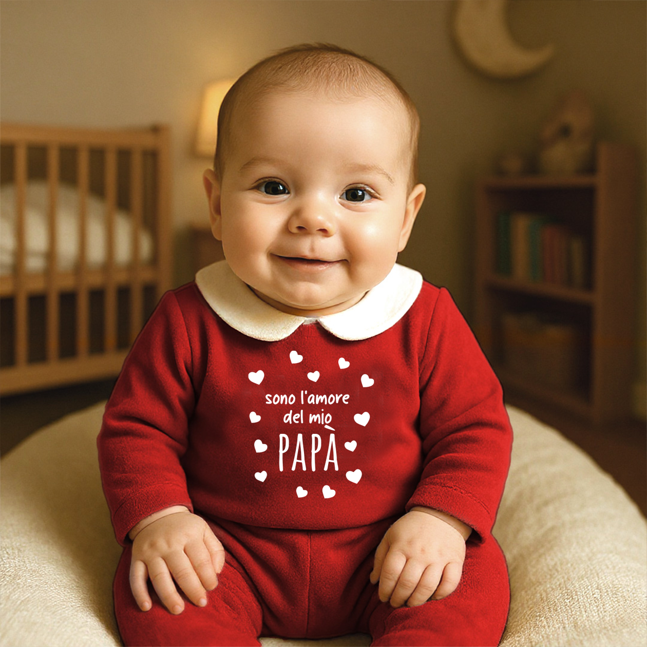 Sono l'amore del mio papà - Pagliaccetto Neonato in Ciniglia con Colletto Bianco