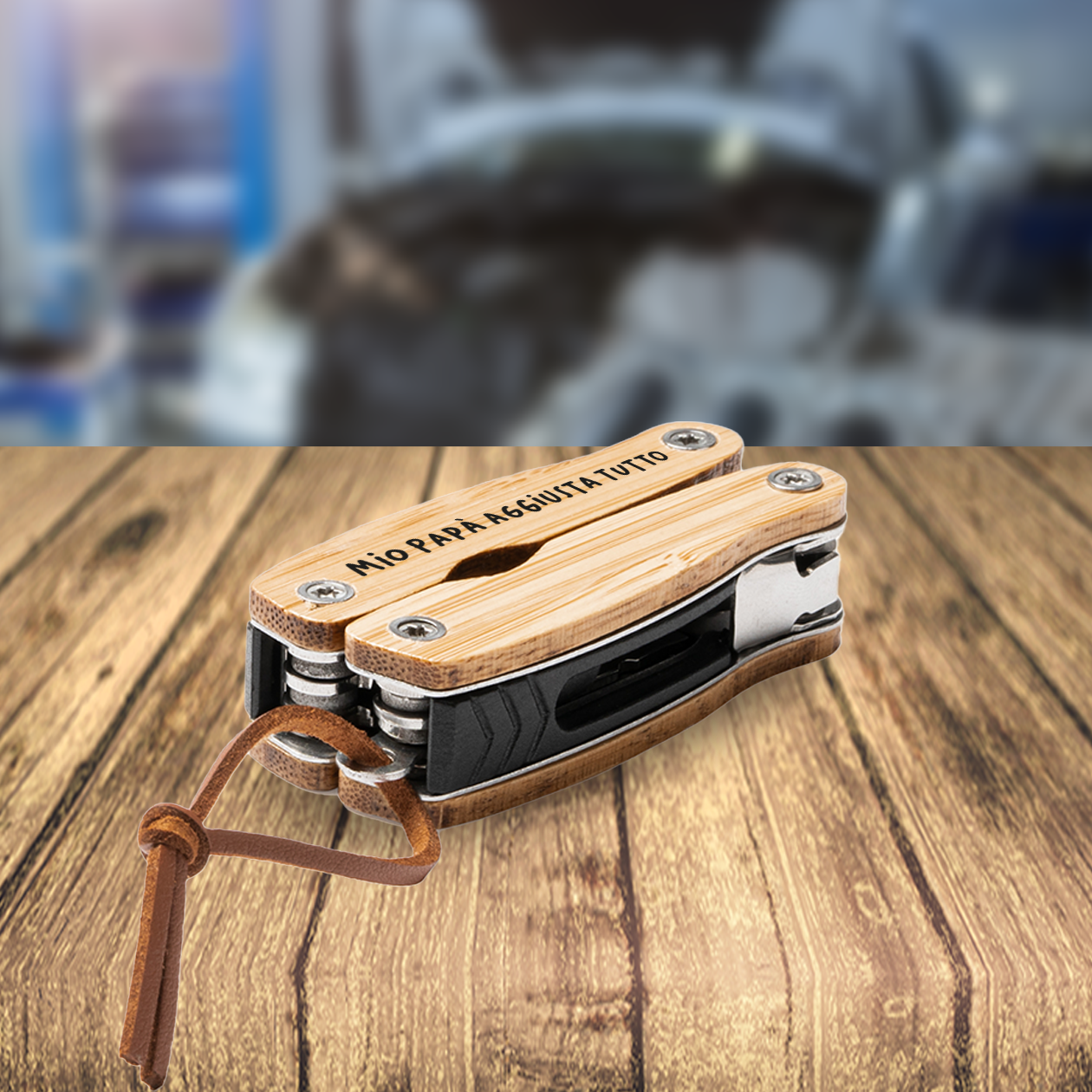 Mio papà aggiustatutto - Multiutensile con accessori in acciaio inossidabile e manico in legno