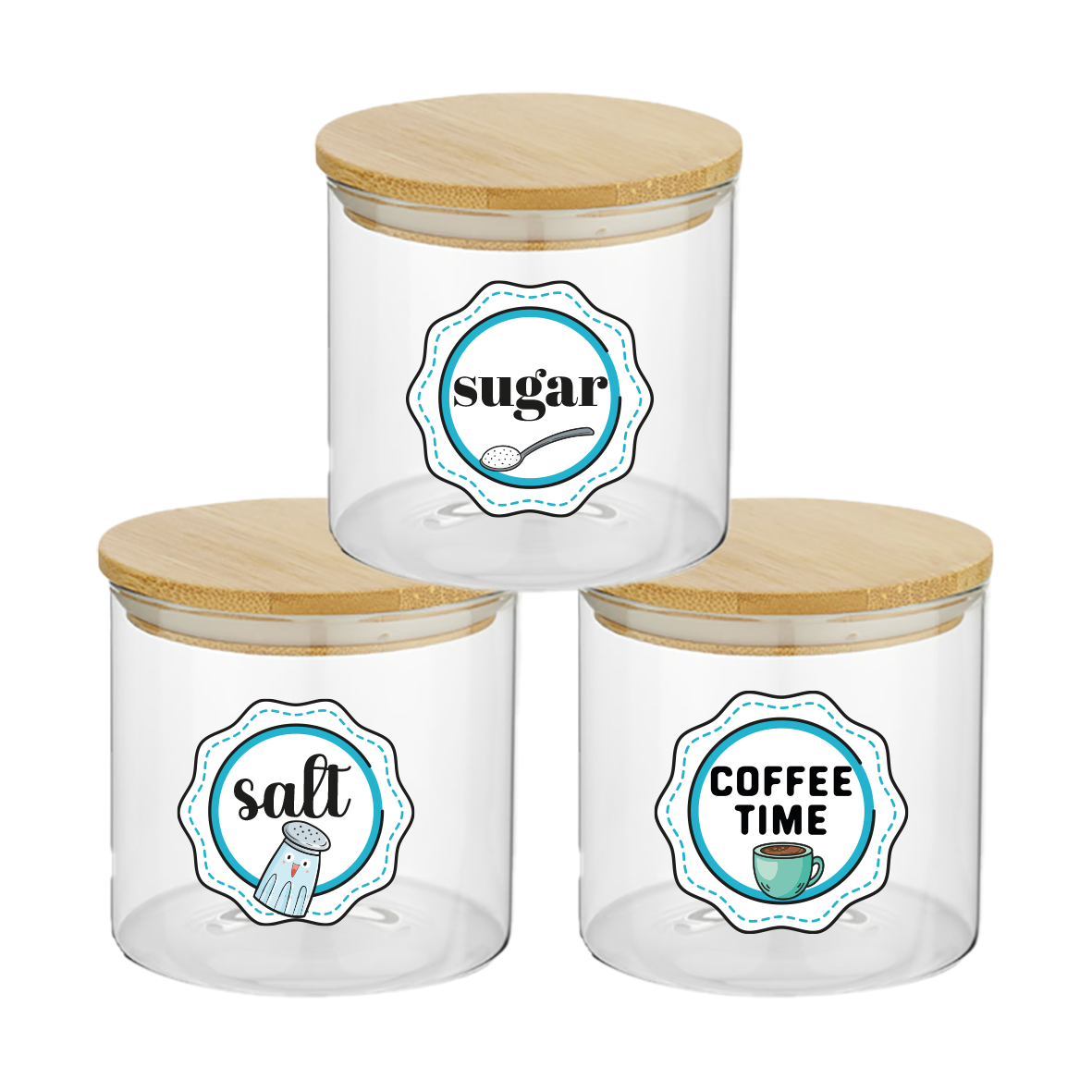 Sugar, salt and coffee time - Set 3 Contenitori Trasparenti per Caffè Zucchero Sale